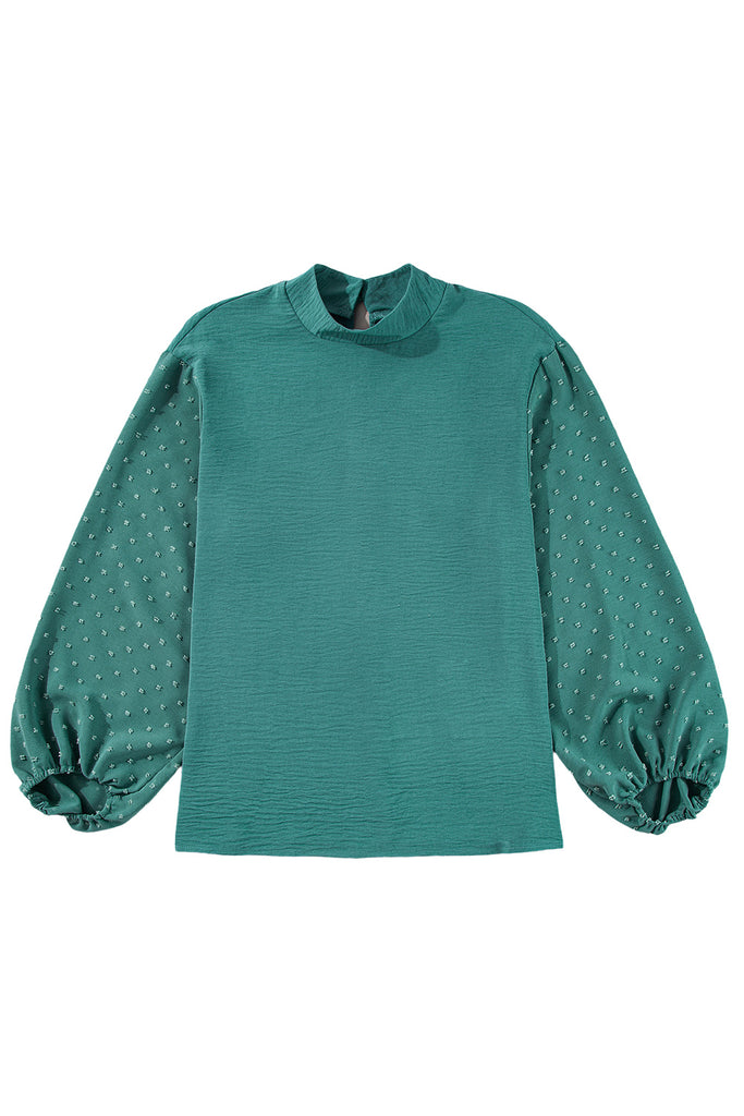 Skobeloff Swiss Dot Balloon Sleeve Patchwork Crinkle Blouse